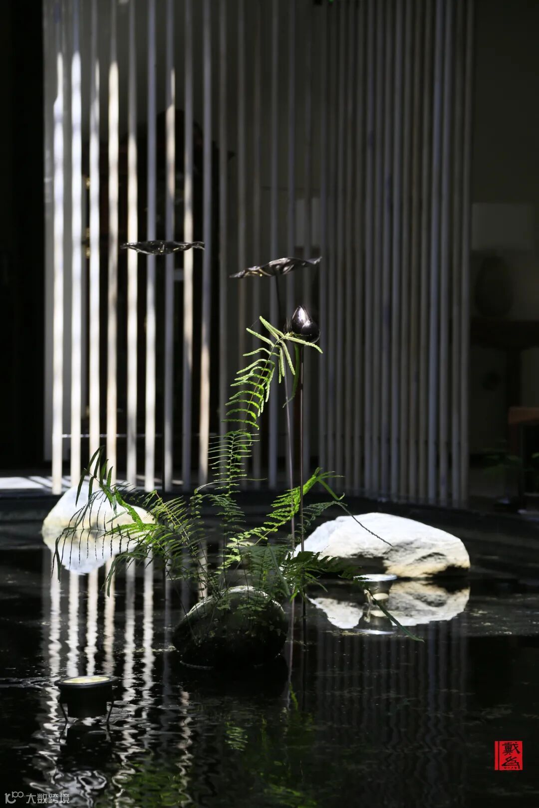 光与影在其中起舞,于是凝固的建筑物便有了流光疏影,从光影撕碎的间隙中发现了时节的变化。奇石为山,池为水。于庭院中观春花夏虫秋叶冬雪,赏四季之变化。