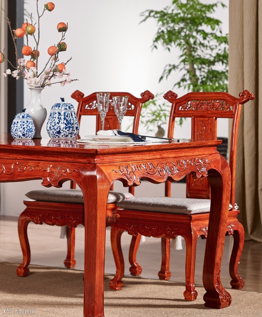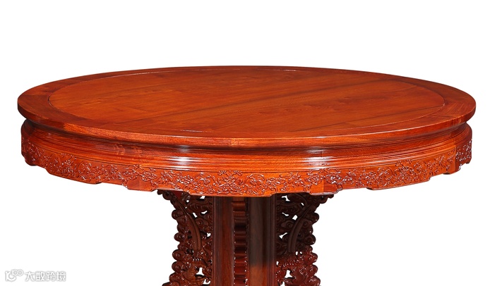 2、餐厅的圆台或者餐厅,是在红木家具品类中磨损程度最严重的,不仅有盘碗餐筷的物理磨损,还有热菜的温度产生的影响,高温使得玻璃和木面之间的空气瞬间加热,然后热气冷却过程中会形成小水珠,这些水珠凝结之后随着时间推移,慢慢在玻璃和木面之间形成水渍。避免产生这类问题的方法可以在热菜地面放一个隔热垫,或者使用一段时间需要移除玻璃,对台面进行养护清洁。