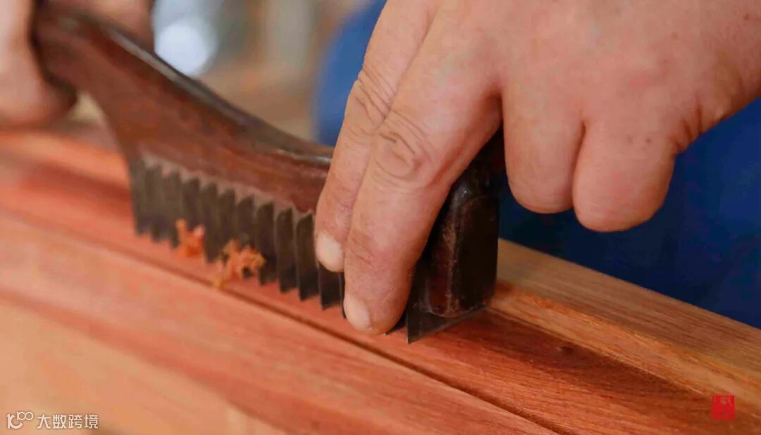 在视觉上,大果紫檀(俗称缅甸花梨)材质,经过手工处理之后,仍可见木面清晰的纹理,丰富优美。