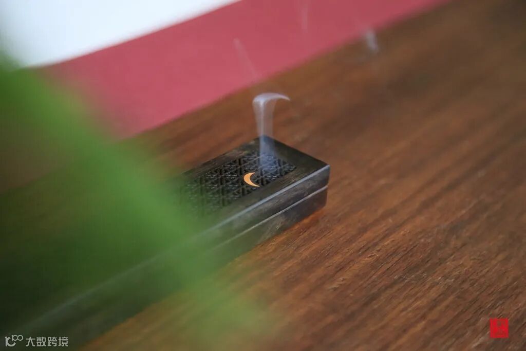 用打火机从图纹开口处点燃即可闻到香粉的香味……伴随着香气慢慢氤氲整个空间,我们可以放空自己,进行阅读、品茶、抄经、假寐……