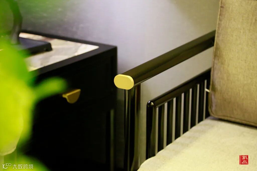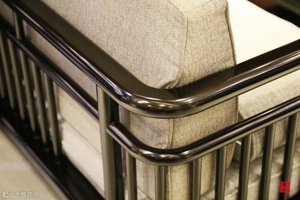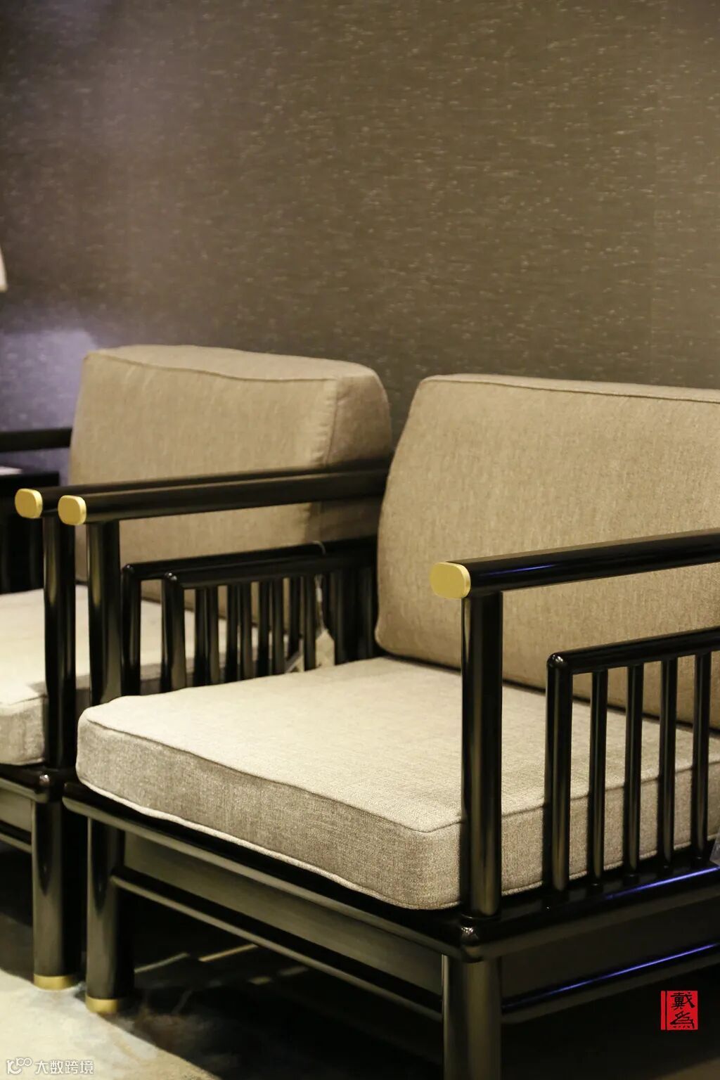 这一套墨影梳化干净得没有一丝丝多余的花边气息,全用名贵硬木制作而成,但同时,在和谐统一的设计中,腿足与扶手处给予了金属装饰。
