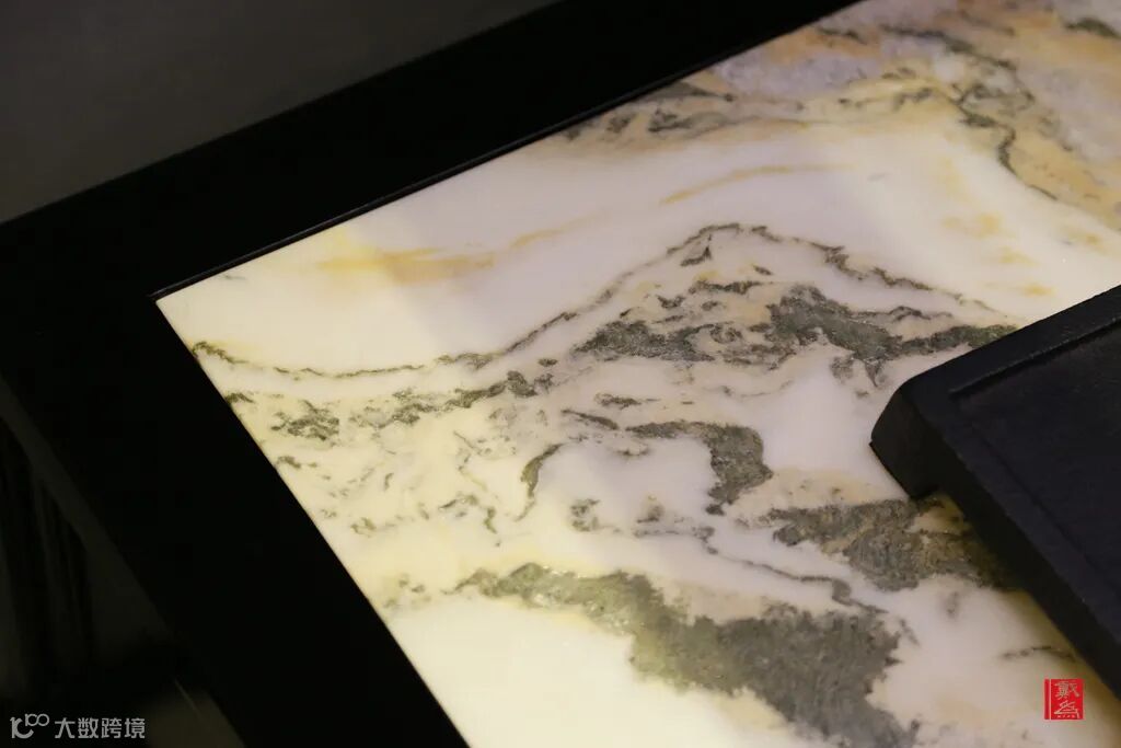 方正的台面呈现一幅独一无二的自然山水画卷,让我们从中知晓墨影的含义。