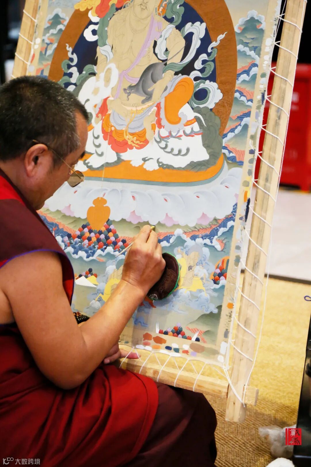 绘制唐卡对于画师来说,是“在绘画中修行,在修行中绘画”。因为唐卡画面多以佛教、经文故事为主,其细节精美、震撼人心,映射的是修行者内心的澄澈与光明。