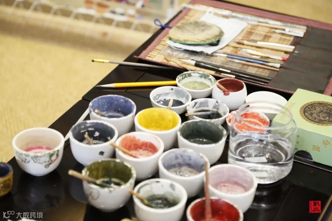 紧接着用画笔进行上色,用天然的颜料,展现画面的艳丽与不俗。