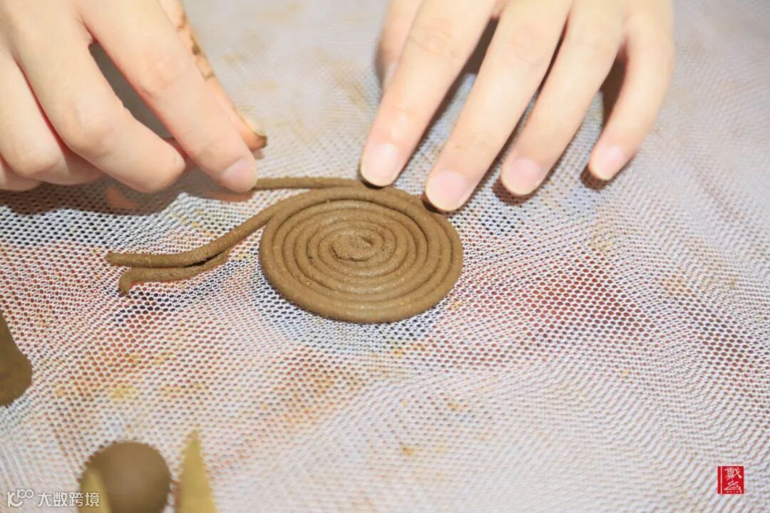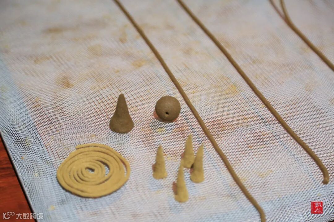将香料研磨成粉,再将香粉制成香泥,做出不同种类的香,譬如线香、丸香、盘香、塔香等。