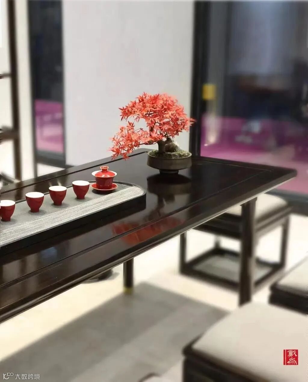 我们除了于大面积木色中融入质朴的器皿,精致的茶具以外,还可以考虑从地毯、灯具、插花、绿植、挂画等入手,用每件物品的独特味道,营造意境空间。