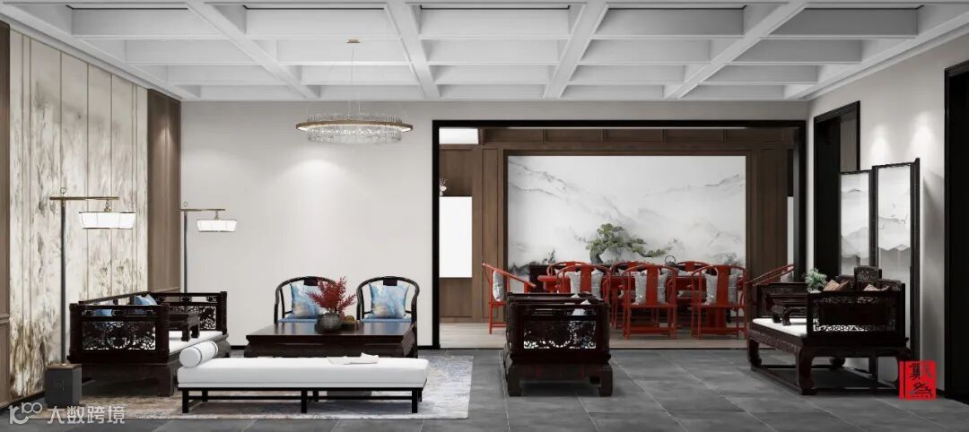 中式元素空间,装饰元素的材质肌理需要一种朴实内敛的调性来和红木家具呼应,在装饰手法上掌握好度,控制好元素的叠加组合,在主要调性基础上,用一种对比或者留白做到画龙点睛。