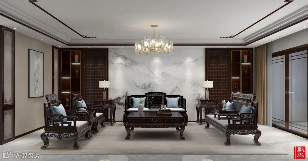 用红木家具来定义中式家居空间,除了对红木家具的精心选择,也包括对空间装饰设计要素的选择,不同的装饰质感体现了不同的空间定义。