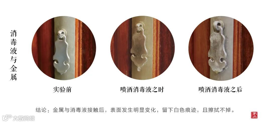 通过这些实验,我们可以得知,消毒之时,要注意面料布艺、金属等不适合与消毒液接触。