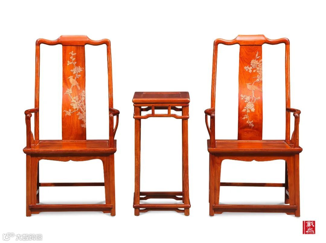 明代官帽椅简约,注重精神境界的融入与表现,内涵丰富,众多文人参与设计,具有一定创新性。清代官帽椅大多注重雕饰,表现其主人物质品味。其传统雕工工艺十分精湛,不同的雕饰元素也使得画面丰富,如山水人物、故事情节,整个画面展现出一定的层次感。而且背后呈现90度,使座上之人正襟危坐。