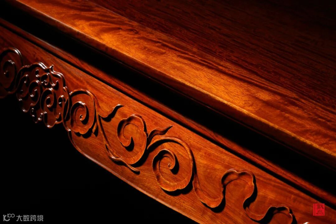 纹:红木的纹理本就是其他木材难以企及的,大漆凸显木质,纹理也越发清晰。又如山水相交,起伏生动变化,极具韵味。在纹路变化中窥见深厚的文化沉淀、以及个人的品味。