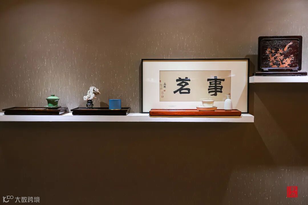 书法挂画的表达,多为极简表达,在空间中作一段旧时光,只为打造极致美韵、宋之意境。这种表达是简单通俗的,平淡之中又颇有书消永日的意味。