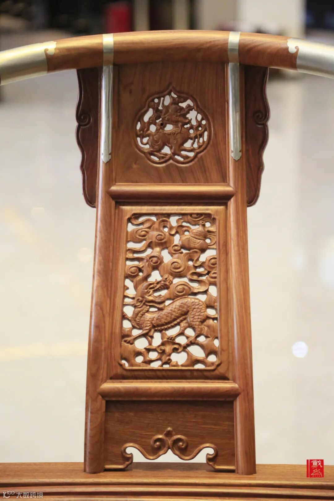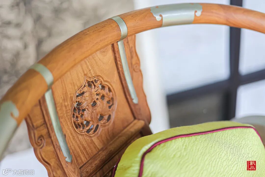 圆形椅圈一般分三至五段形成,每段都由大料挖做,又结合榫卯结构,使得其严实密缝。又在接榫处、踏床面板处加以金属饰件,金属叶片与家具相合相融,浑然一体;既是装饰,也是加固。