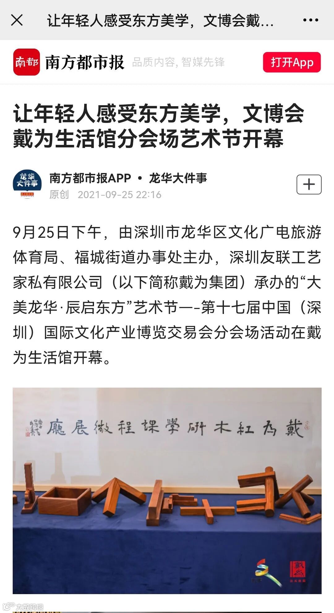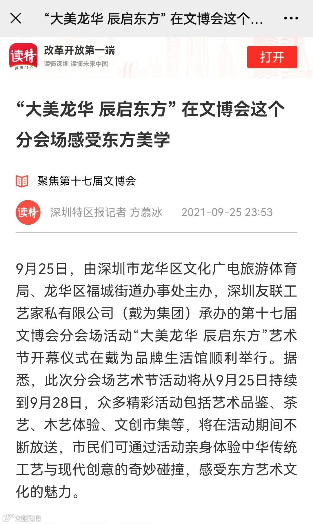 2021年9月25-9月28日,在戴为生活馆如期举行了“大美龙华,辰启东方”艺术节,第十七届文博会分会场活动。活动在展示、体验东方文化及各种作品、衍生品的同时,结合视觉化的诠释方式、沉浸式的亲身体验,使得文化、作品、空间形成协调而又统一、具有东方美学氛围的新平台。