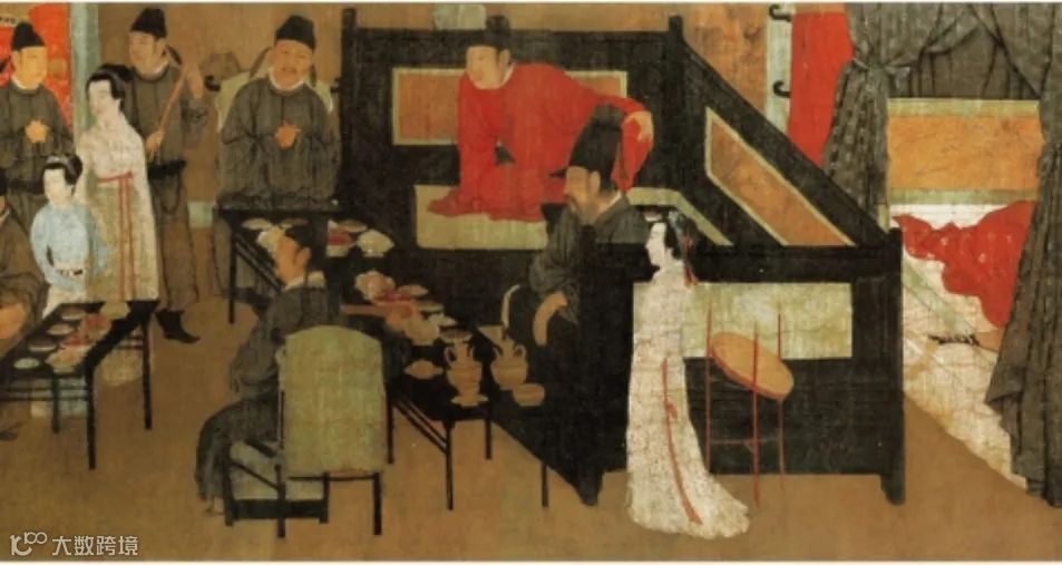 自唐以来,流传绘画中便有不少围绕着罗汉床为中心设宴待客的,其中较为出名的便有《韩熙载夜宴图》。夜宴载歌行乐,宴间小憩于罗汉床,独有一番风味。
