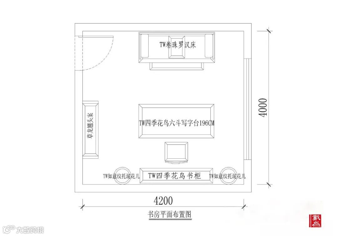 立于书房,罗汉床便与书香、茶香成了一体。一般立于书桌对面,也有做侧方位摆放。有好友至,即可相对而谈,也可在罗汉床上谈古今辩是非,也别有一番韵味。罗汉床几百年岁月沉淀出的气质,在书房中并不突兀,反而如君子他乡知遇更是难得。君子立于书房,立于何处也是一处绝妙风景。