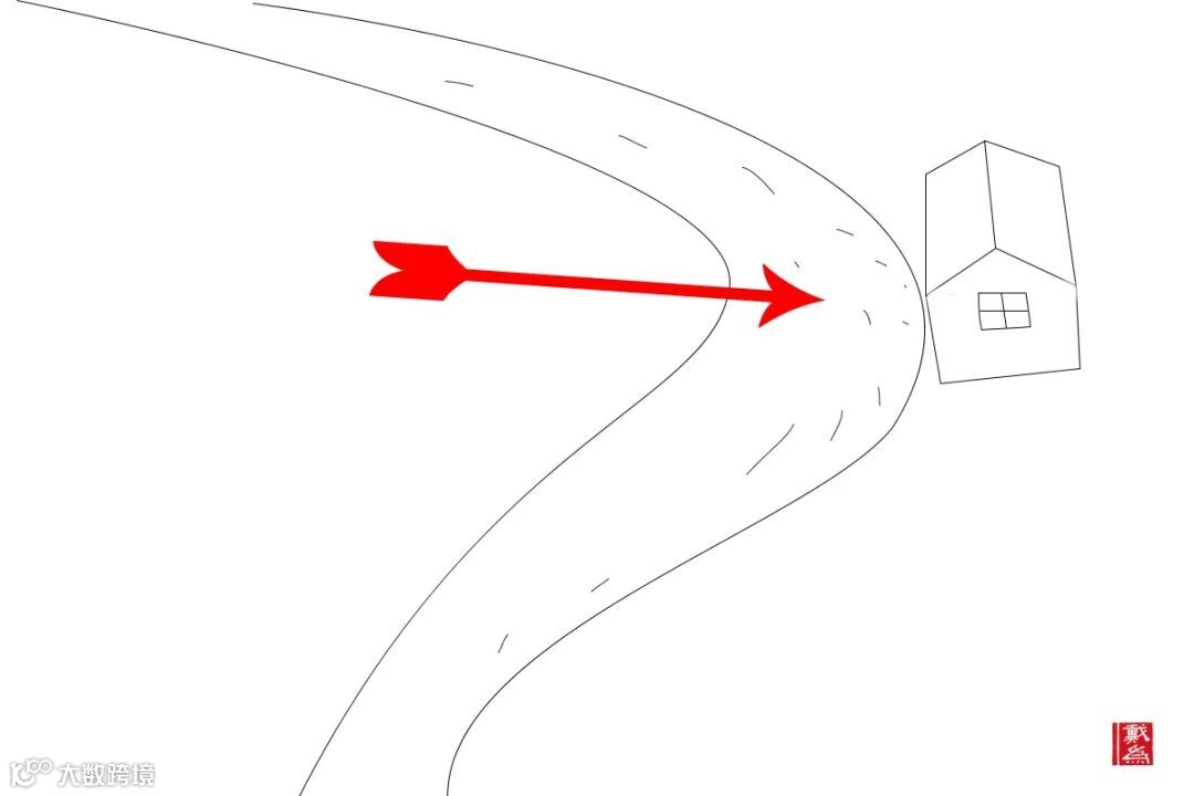 2. 反弓煞;也称为镰刀煞。房屋500米内如果有弯曲的河流、道路经过,如果房屋位于弯道圆弧的外侧,容易使房屋受损、产生争斗等。河流泛滥一般从弯道外侧溢出居多,且该处日常受到河流相对较强的侵蚀,土质疏松;从道路来说,车辆于打滑失控很容易冲出撞到该侧的房屋。