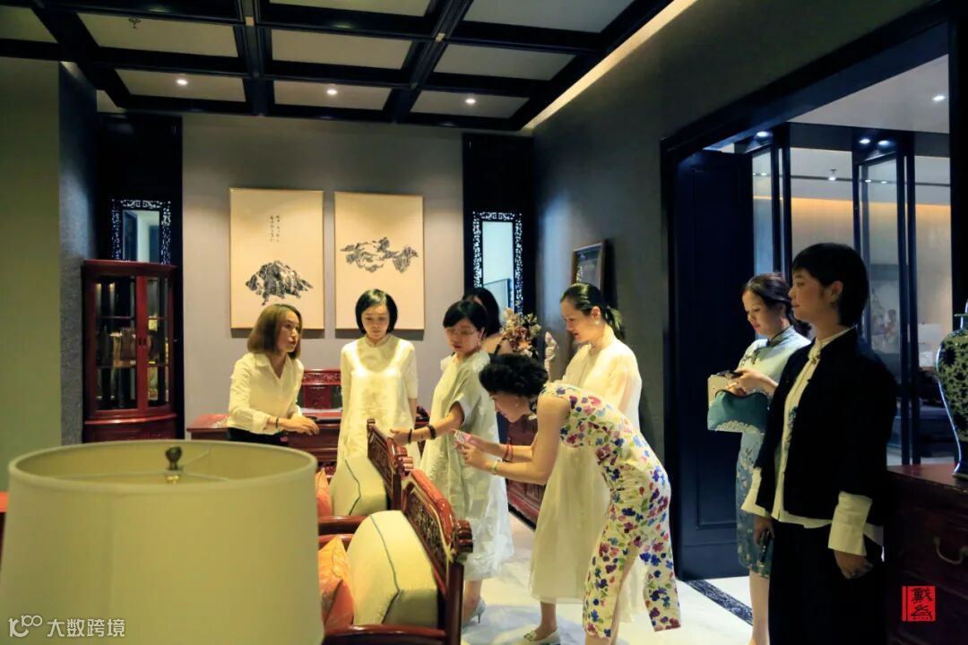 各位女企业家走进戴为生活馆家居展厅,切身了解、感受中式文化。走过每一个区域,我们都会向大家介绍这个空间的独特之处,以及家具产品的设计亮点。