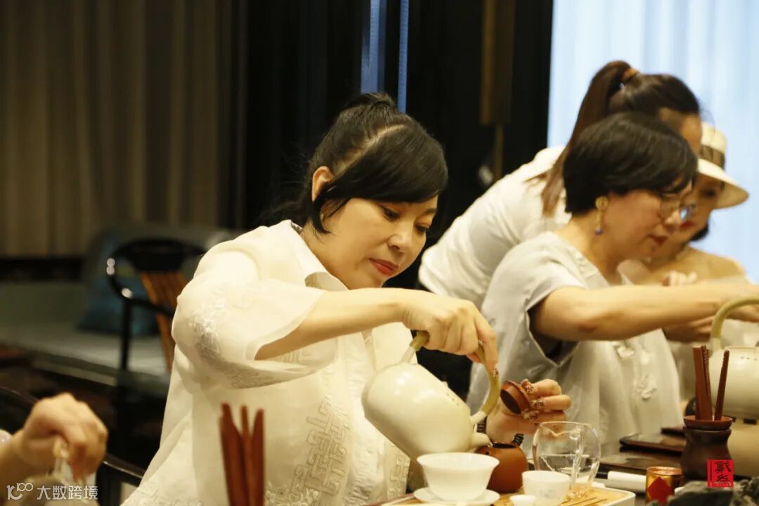 大家围坐茶席,一边听茶艺师讲解茶文化,一边试着自己动手操作,感受大红袍、老枞水仙、藏茶等的不同茶之味。