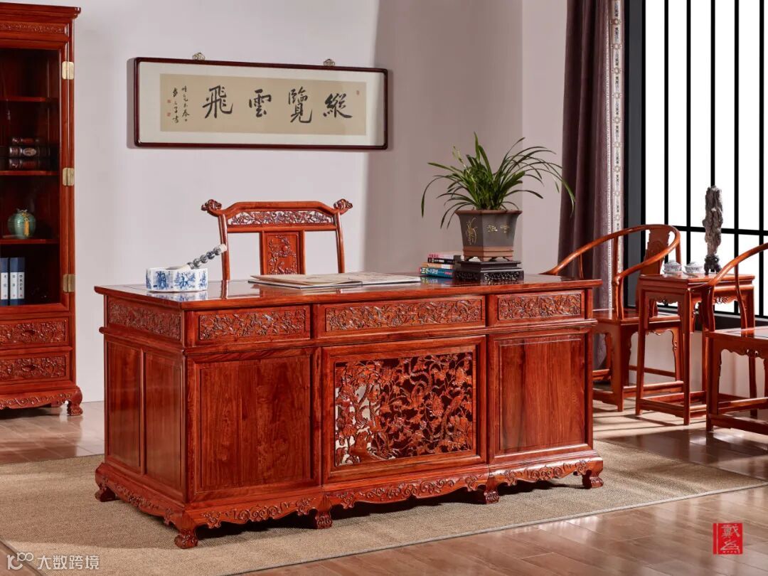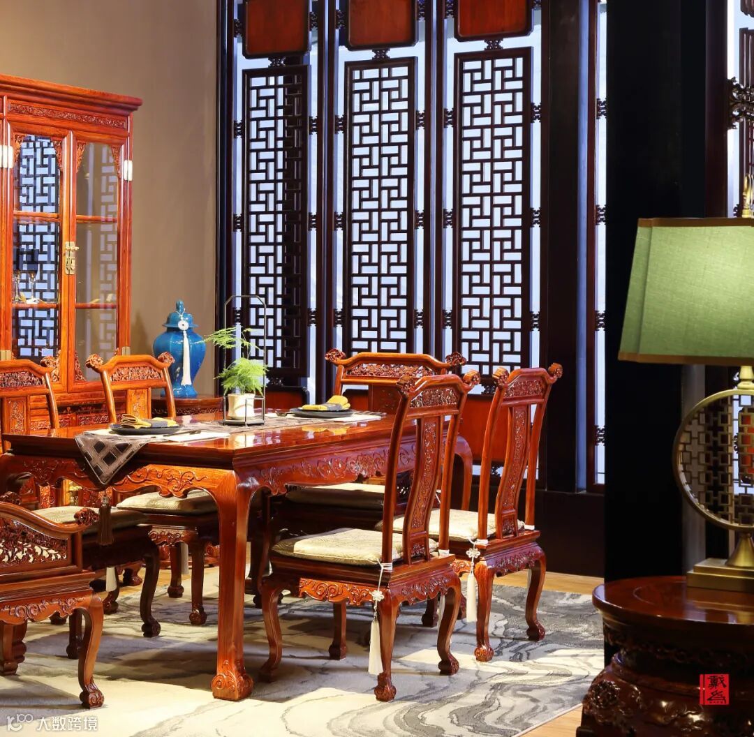 中式物件中有各种祈求平安、寓意吉祥的图案。从建筑的廊,朱门的老锁到瓷器的外观,都有神秘而精美的纹样。到现在,我们于红木家具中饰以山水人文图案,用由简入繁的纹样雕琢自然美景的不同状态。