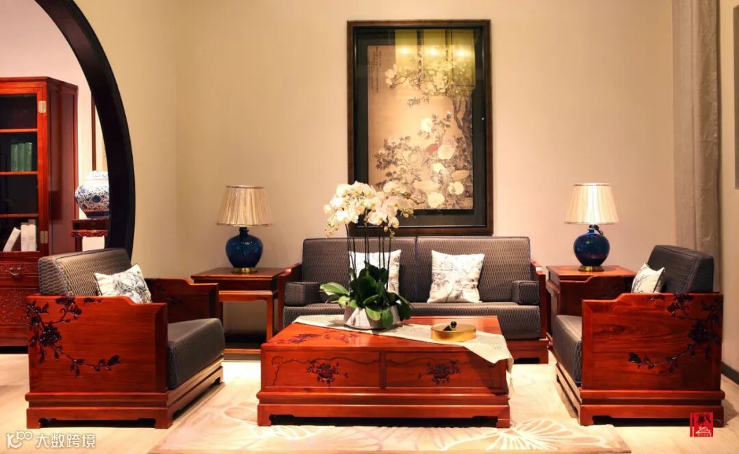其中,花卉在红木上竞相争艳,用独有的中式印记,描摹自古以来的芬芳。