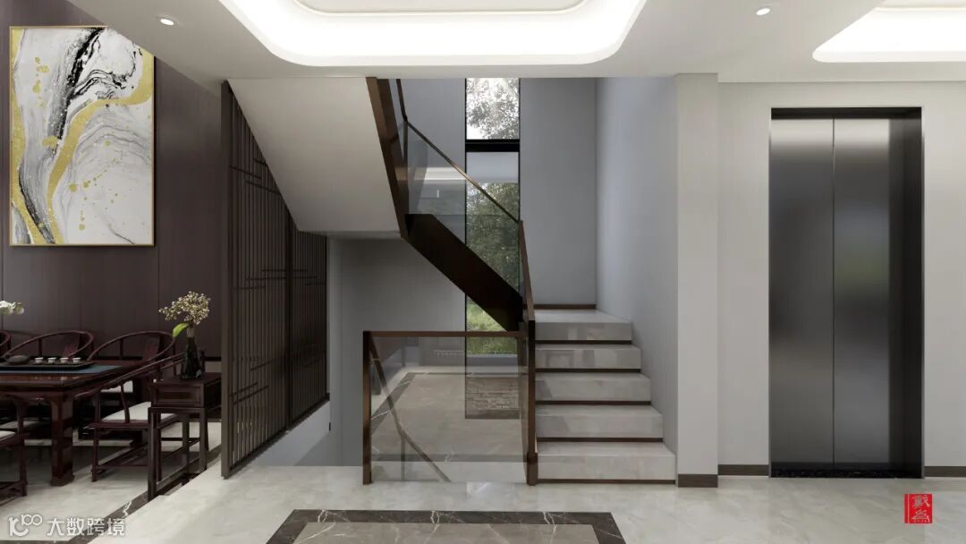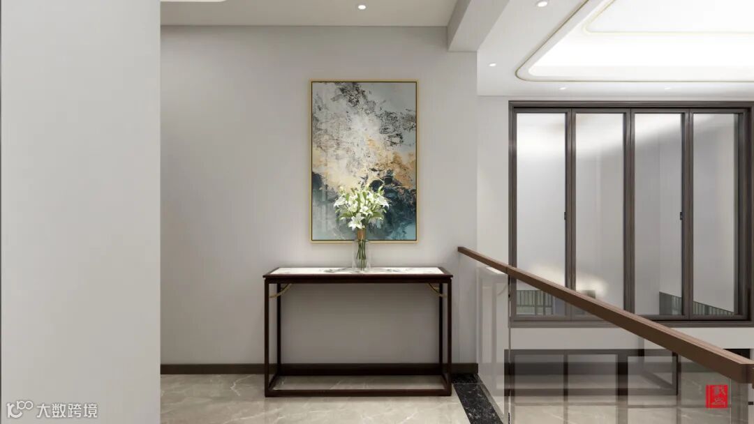 其实,我们不仅在各个主要空间进行设计,也考虑到走廊、楼梯转角等区域,思考着应该做出一些变化。用简简单单的一张丹青条案,搭配清新的绿植与挂画,转角变得不再单调。