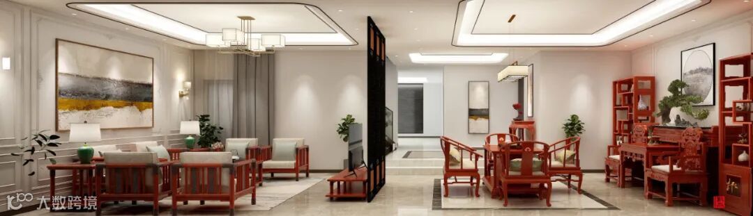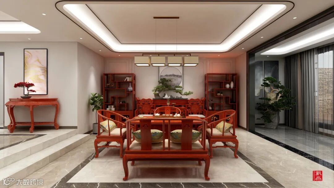 认真布置家里的每一个空间,和家人分享每一段温馨时光,是每一位屋主的初心。我们在负一层主要用红木家具传达情韵,那么一楼的活动区更为精致了。