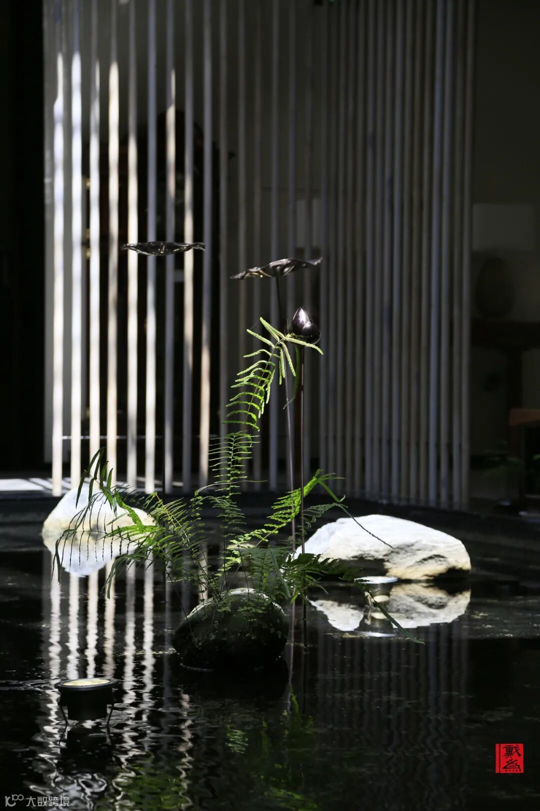 迂回的小廊,静听有清澈的水流,泠泠作响,静看有流动的喷泉,美丽悦耳,激起层层涟漪,好似给空间注入活力与生机。
