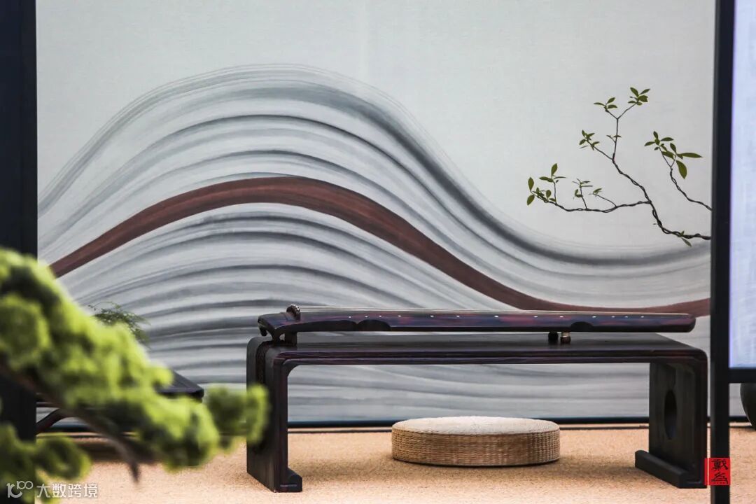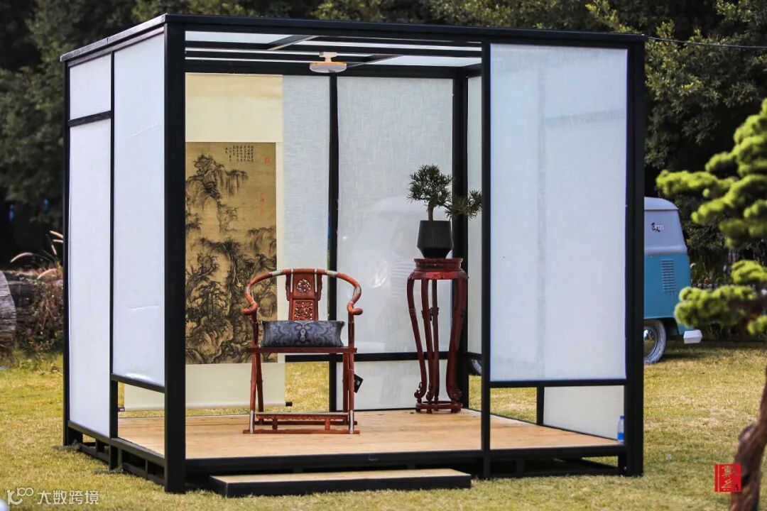 戴为生活馆除了室内景观,此次还在户外草坪搭建禅韵造景。用四个不同的空间,通过茶道、香道、琴韵等与中式家具结合来表达禅韵的意境美。