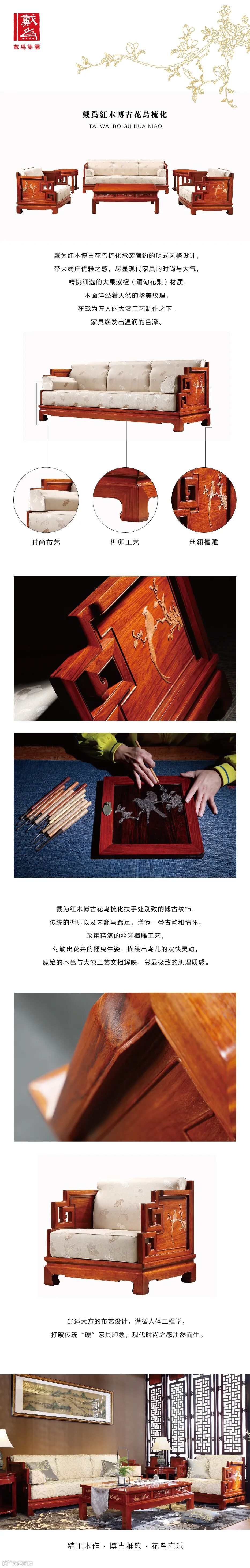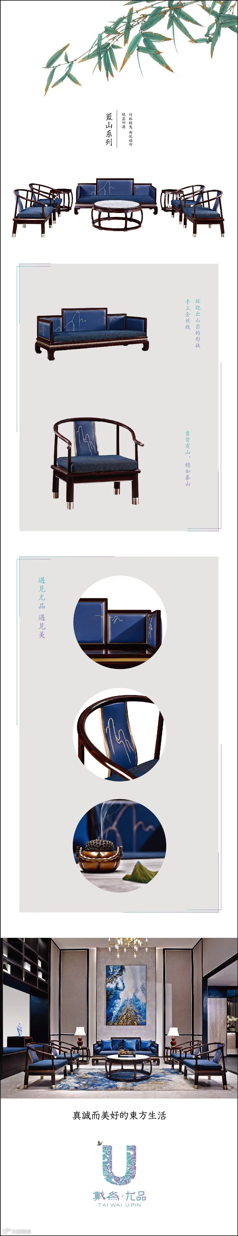 作品要时尚现代且不失东方韵味。比如原创设计“戴为红木”博古花鸟系列,“戴为尤品”蓝山系列等……