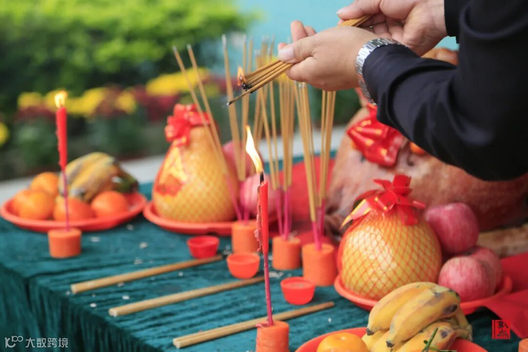 燃放鞭炮,供品敬献神明,祈祷新年一切顺利,图个招财进宝、生意兴隆的好彩头。