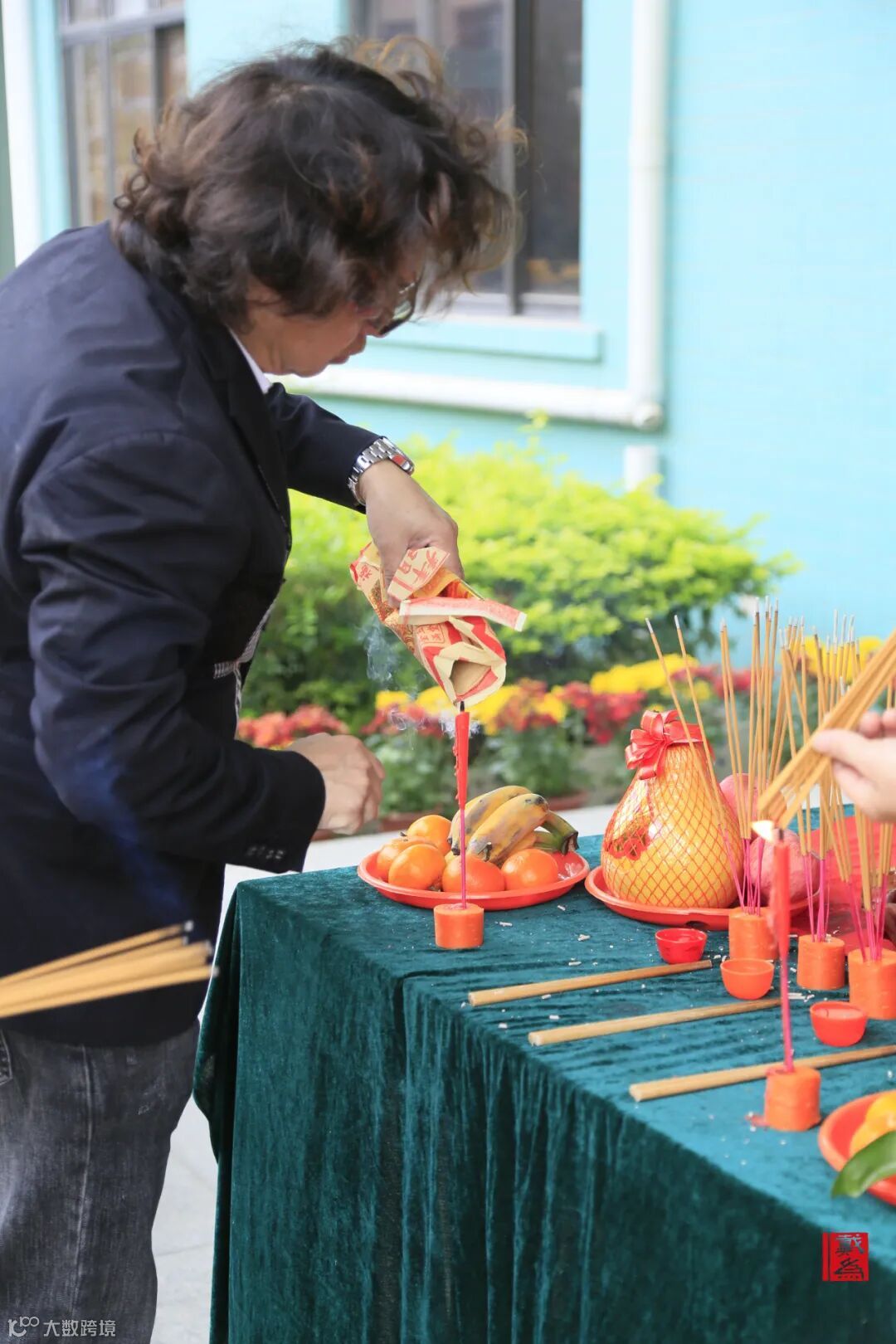 今天,大家早早的就将供奉的供品摆放整齐,点燃蜡烛,等待开工仪式。