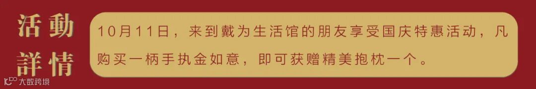 10月11日,来到戴为生活馆的朋友享受国庆特惠活动,购买手执金如意不仅可以享受全年直击底价,还能获赠精美抱枕一个。