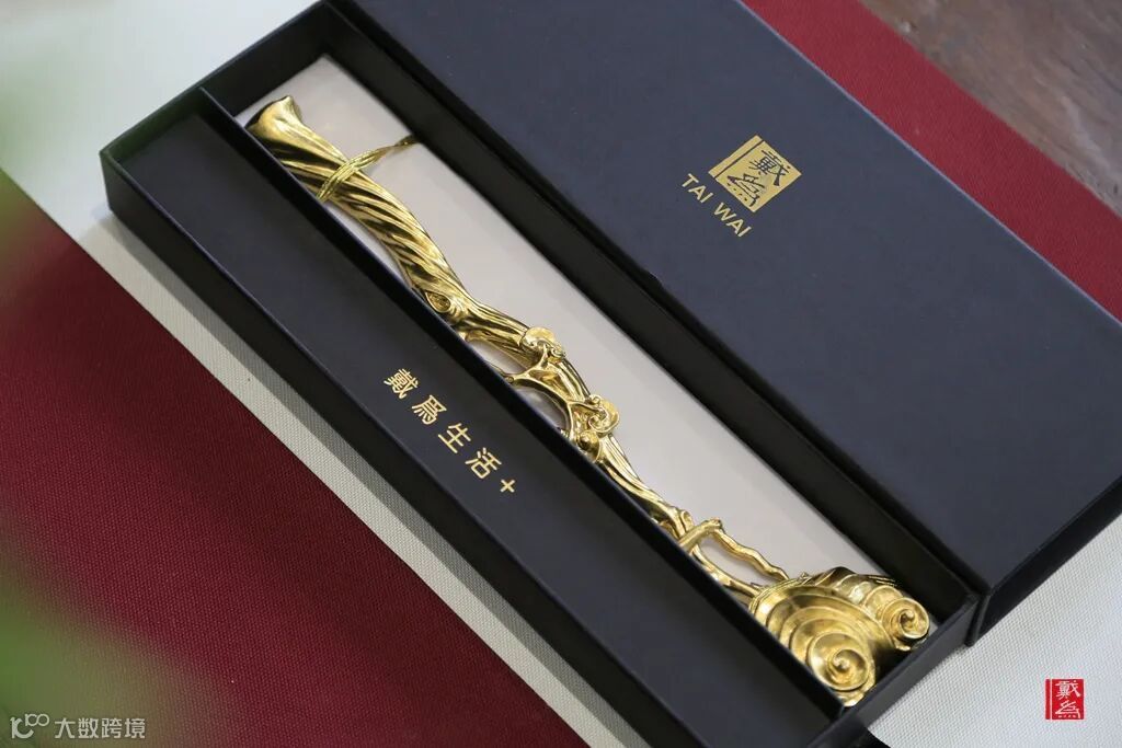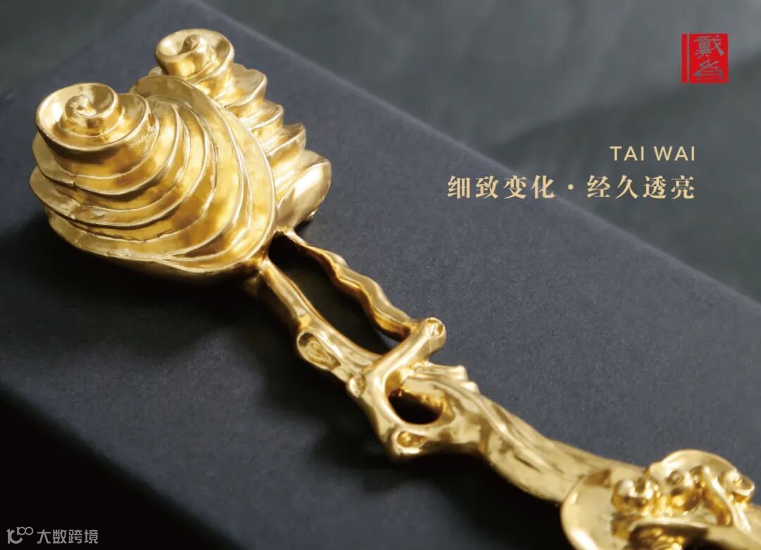 其造型一端为缱绻起伏的如意造型,又似饱满的元宝,另一端为手柄,主体呈流线形,柄微曲,造型美观华丽,神似象征权利与地位的权杖。