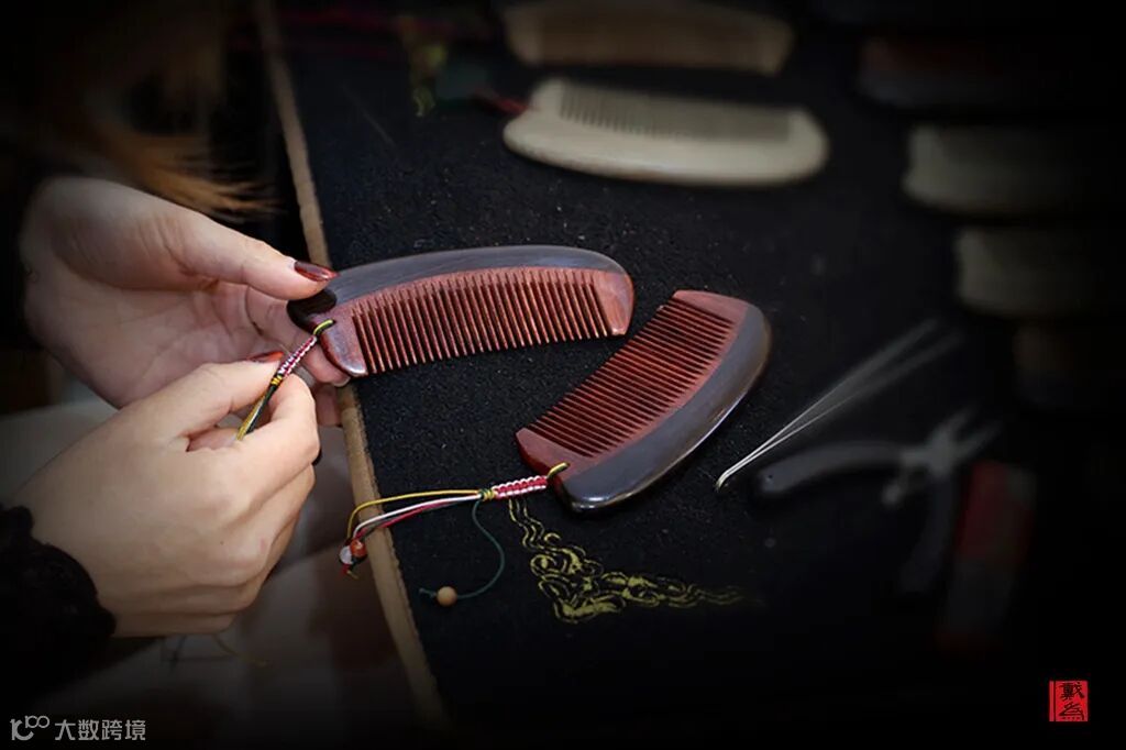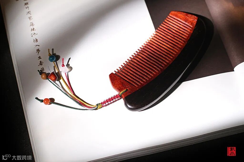梳子的构件不像家具那样大件,便于做手工处理。即便如此,手柄处依然用榫卯工艺将两种材质拼接。由此,梳子的工艺难度可想而知。