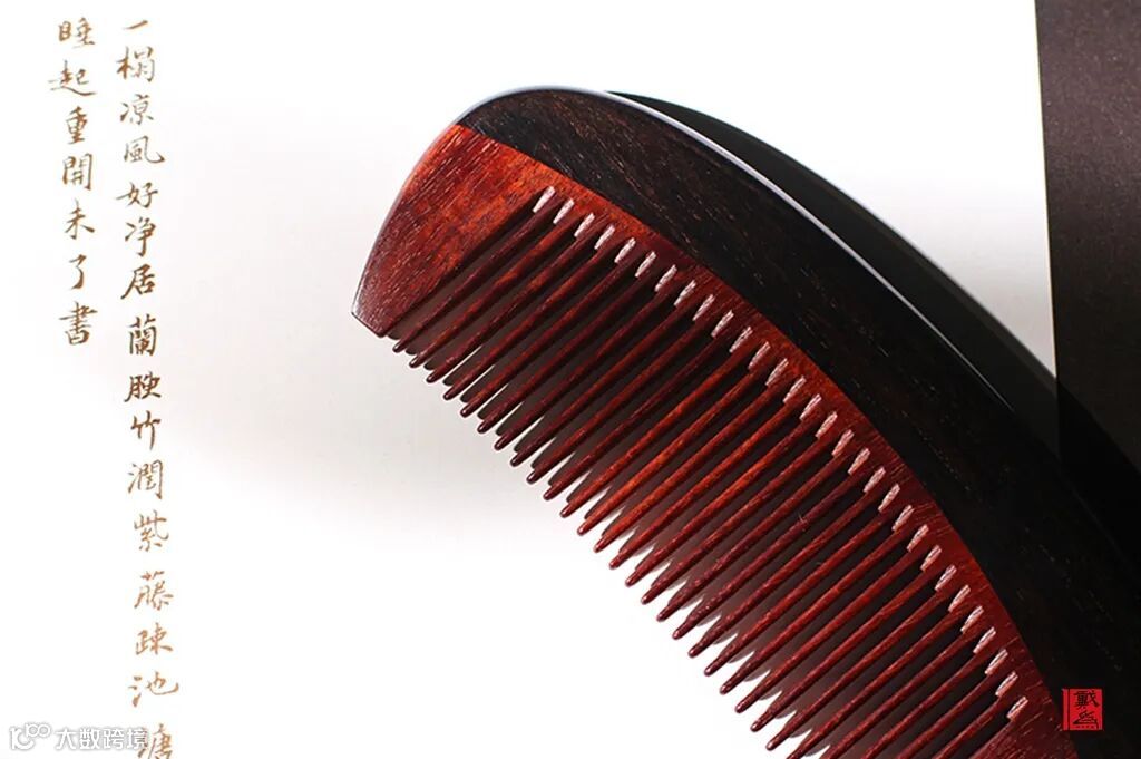 设计简约的木梳,是紫光檀和赞比亚紫檀手工打磨后的温顺模样,简单美好。