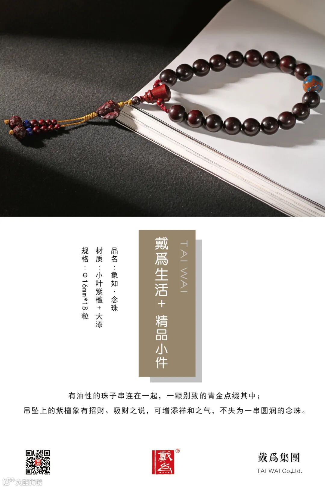 象如·念珠用于把玩,主要由18颗油性的小叶紫檀珠子组成。