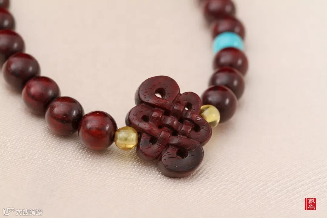 原本暗红色的珠子,配一抹明艳的天蓝色珠子,在整个主色调中展现的魅力也会有所不同,有冷暖结合的效果,起到互相映衬的作用。