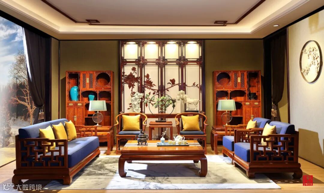 这为红木梳化的设计画下浓墨重彩的一笔,时尚与古典并存。
