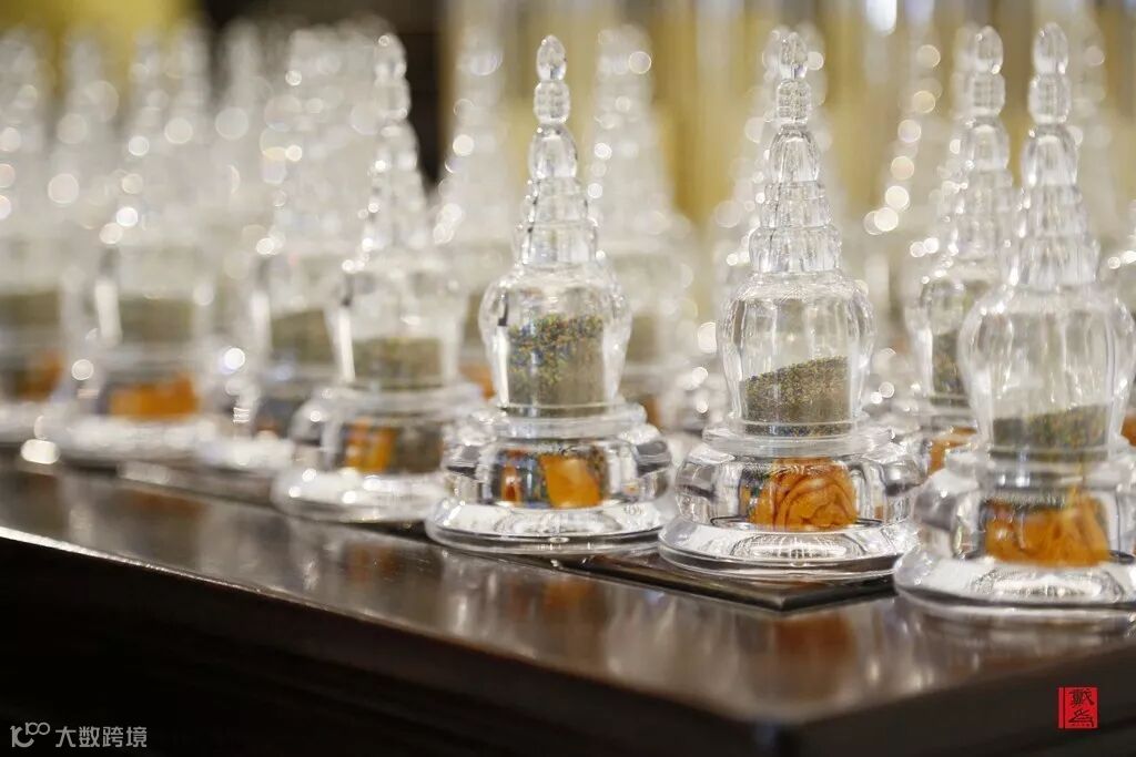接着他们将坛城沙装瓶分发给现场的观众,这寓意将祝福传递给更多的人。