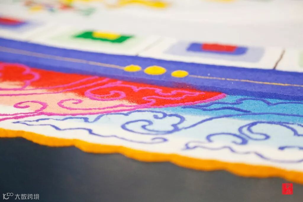 前面提到,坛城沙画选用特殊细沙砌成,因为沙是构筑世界最基本的元素,每一座沙坛城都非常难建,但又都容易摧毁,这种美丽是脆弱的,可以说是转瞬即逝的。