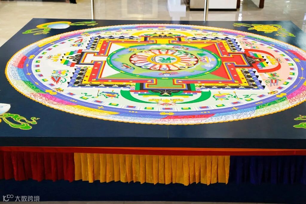 一座坛城可以表示几乎所有真实的或意念中的事物:一座寺庙,一座王宫,一座城市,一片大陆,一个念头,一个幻景…… 坛城是一个想象中的宫殿,如果把它称为画的话,它就是在平台上或正方形织物上的圆形沙画,色彩鲜艳,堪称一绝。