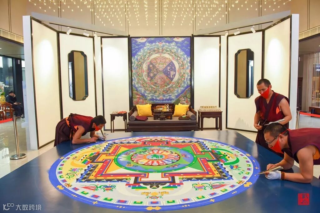 坛城沙画绘制需要数位有经验的画师耗时数日到数月不等的时间,我们这次所看见的这幅坛城沙画便用了八天时间完成。