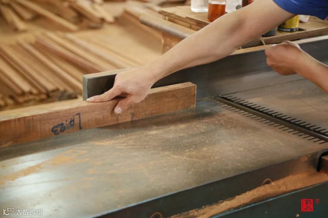 打磨这道工序不仅仅是用刮磨刀来回刮磨,还需要使用到其他刮磨工序,对边角细节进行处理,保证家具没有被使用者直接接触到的地方也是光滑的,阴面与阳面的工艺始终如一。