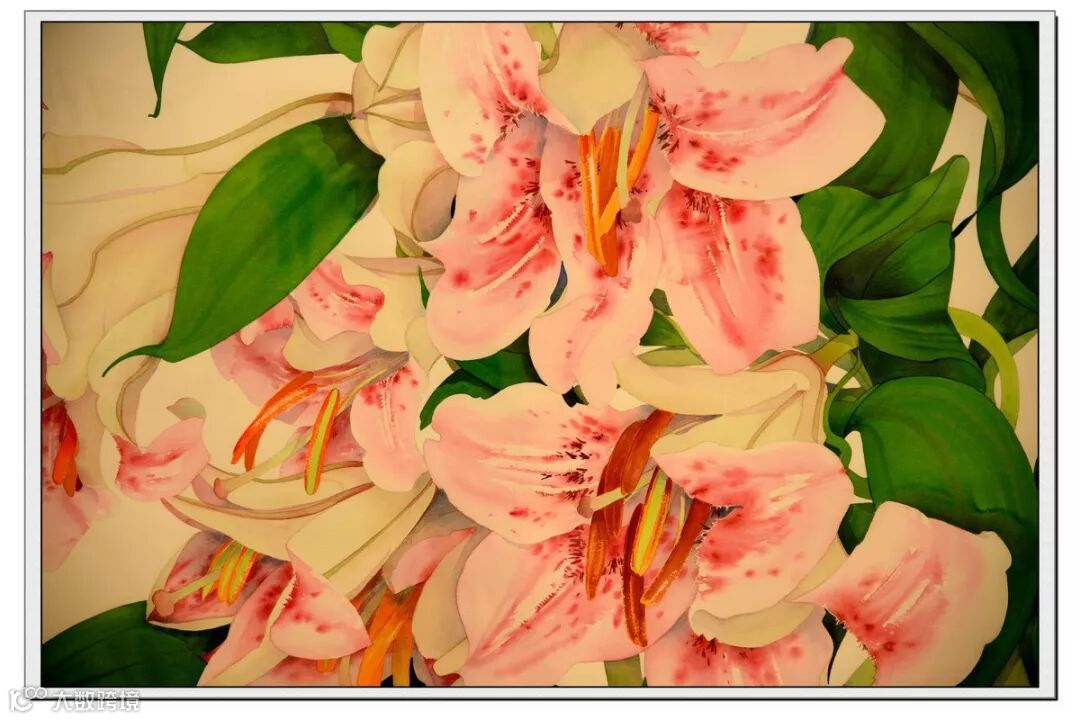 精妙绝伦的调色技术, 创造出极大深度和力度,令人赏心悦目的花卉和其它植物形象以及烹饪食物图像,在纸上精确地再现这些植物和食材的大自然原始本色和生命力,给予它们惊鸿再现和绚丽绽放。