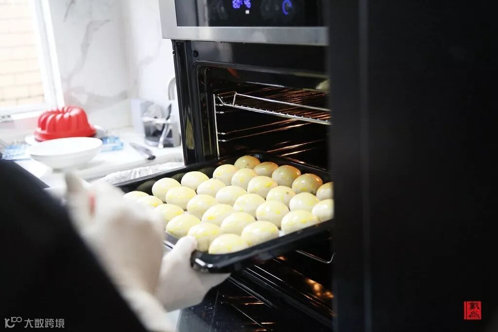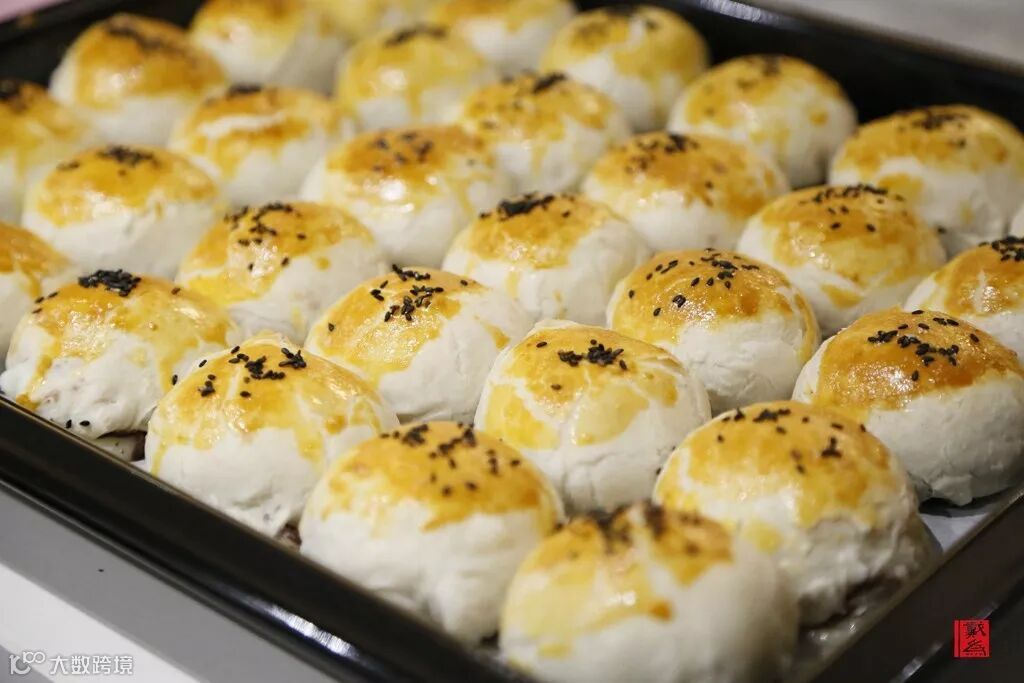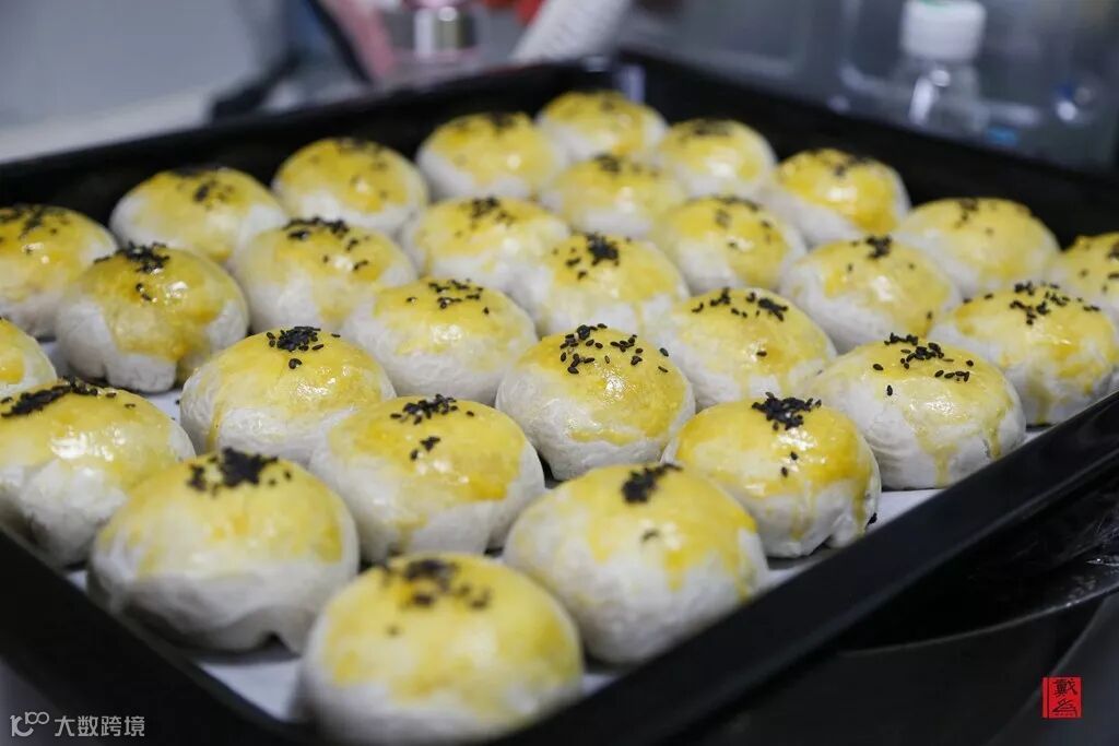 显然,专注的态度能决定一切,这些慢揉慢焙的活儿,在她们手里竟也显得并不复杂,反而游刃有余。通过一些准备工作,将蛋黄酥的馅和皮处理得当,再轻柔的将陷包好,然后进行一系列的烘烤、刷蛋黄、撒芝麻,再烘烤等步骤才可以变成可口的糕点。