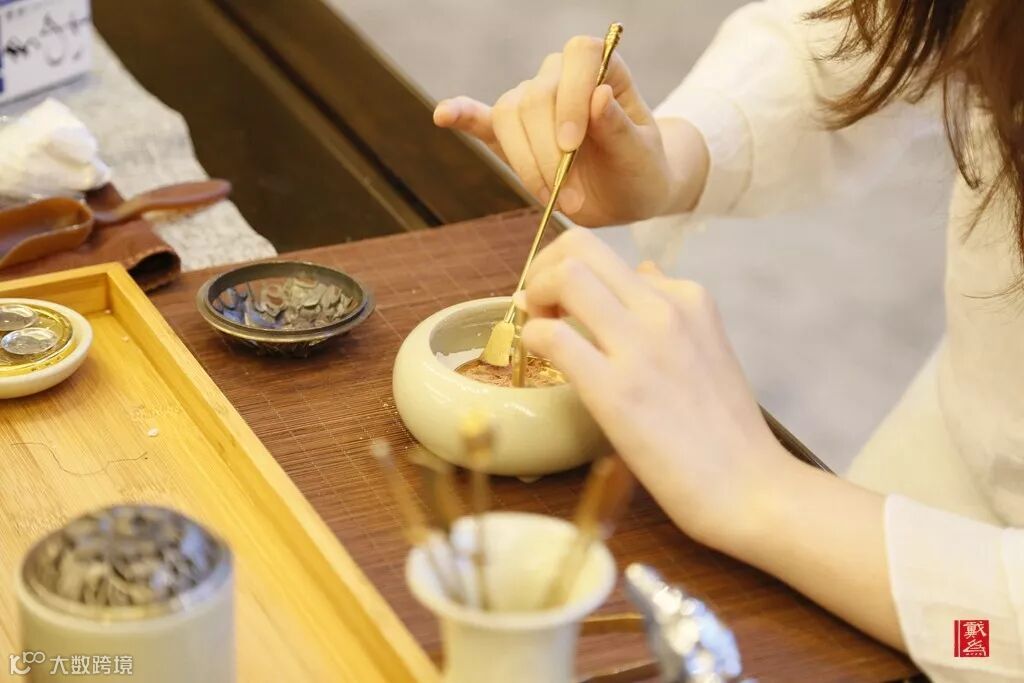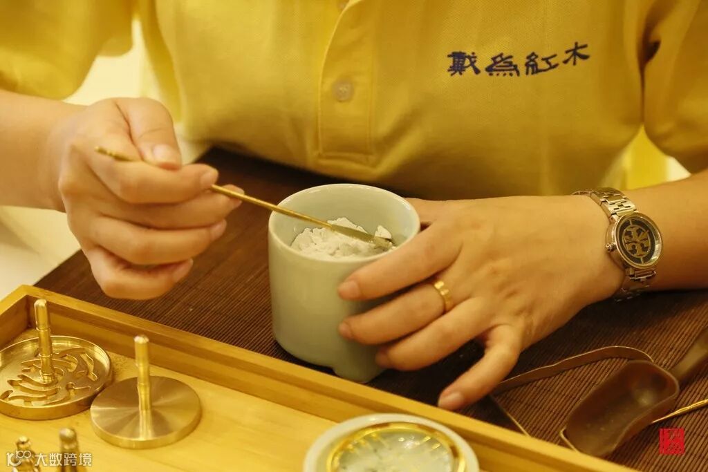 ▲香道师现场演绎“隔火熏香”、“香篆”