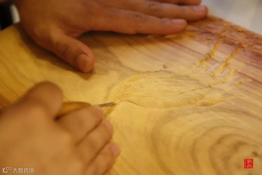 大家看到师傅手中的刀在木板上灵活的运转,鸟的羽毛、松针、树皮等立即活灵活现的呈现出来。“十年磨一剑”,只有经历了不为人知的不断练习,才能做到如此精湛的工艺。