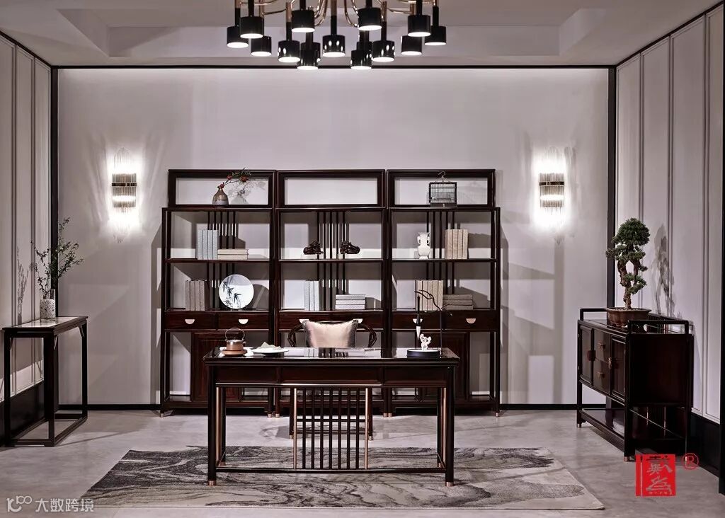 乐水系列书房,格调高雅,简朴优美。不再是过去的繁复雕饰和浓墨重彩,流淌着更多现代人的审美追求和浪漫情趣。一间安闲自得的书房,不动声色地演绎出动人心弦的东方之美。