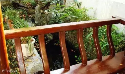 “美人靠”也叫“飞来椅”、“吴王靠”,学名“鹅颈椅”,是一种下设条凳,上连靠栏的木制建筑,因向外探出的靠背弯曲似鹅颈,故名。其优雅曼妙的曲线设计合乎人体轮廓,靠坐着十分舒适。通常建于回廊或亭阁围槛的临水一侧,除休憩之外,更兼得凌波倒影之趣。